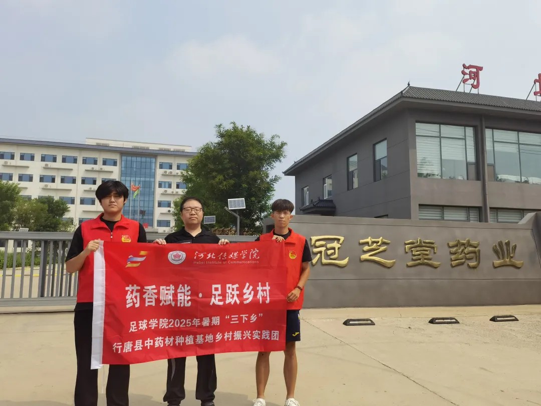 八月的行唐县,草木葱茏,药香弥漫。足球学院 “药香赋能・足跃乡村” 暑期三下乡实践团,在分团委书记兼学生党支部书记、辅导员张子建老师的带领下,走进河北省行唐县,开展了一场集中医药文化探寻、乡村实践体验与产业发展调研于一体的社会实践活动。队员们以足球人特有的拼搏与协作精神,为乡村振兴注入青春动能,让中医药文化在田野与车间间焕发新活力。