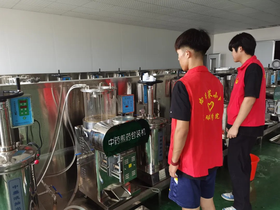 离开种植基地,实践团走进行唐县当地冠芝堂药业的生产车间。在企业领导的带领下,揭开中药材从田间到成品的 “神秘面纱”。队员们透过参观走廊观察中药饮片加工全流程,经过清洗、切片、烘干,变成了整齐的饮片。“这是红外光谱检测仪,能精准测定药材有效成分。” 企业科研负责人指着一台台精密仪器介绍,队员们则认真地聆听检测数据:“没想到传统药材还得靠科技把关,就像足球运动也得用数据复盘战术。”队员们不禁地感叹。