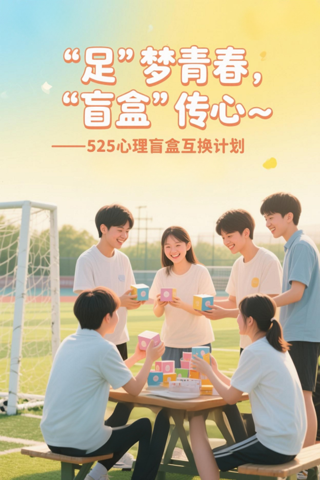 5 月 25 日全国心理健康日即将到来 ,为了让大家在忙碌的学习和生活中关注内心世界,足球学院学生会将举办 “足” 梦青春,“盲盒” 传心主题活动。